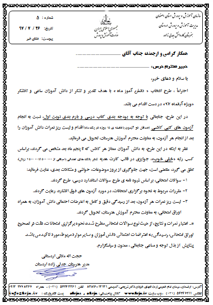 طرح انتخاب « دانش آموز ماه »